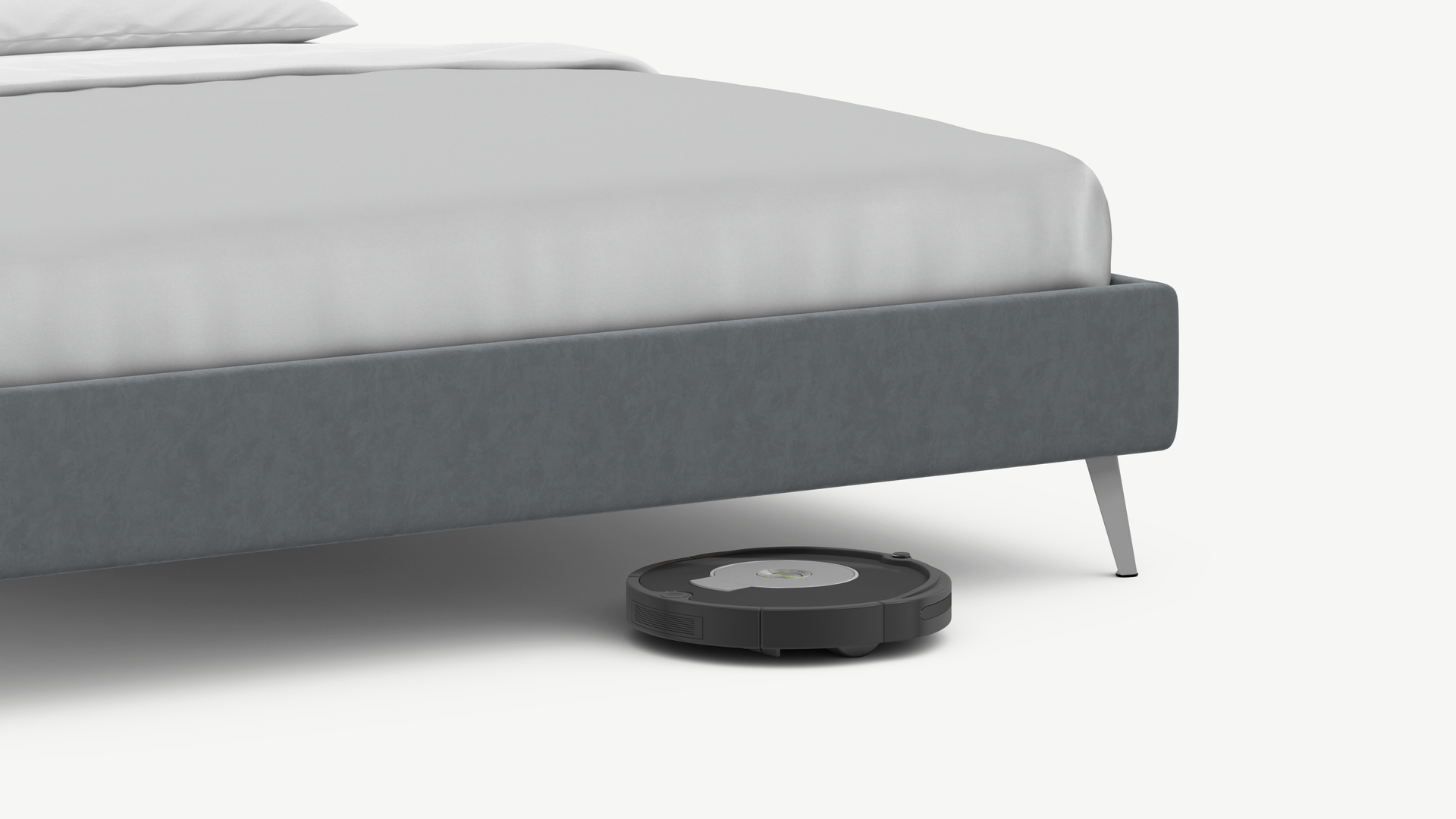 Высокие металлические опоры наклонной формы создают над полом достаточный просвет для движения робота-пылесоса, что помогает поддерживать чистоту и порядок в доме.