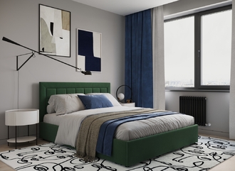 Стежка помещена в центр изголовья и обрамлена, словно картина. Объемные царги становятся гармоничным дополнением образа и завершают цельную фигуру кровати.
