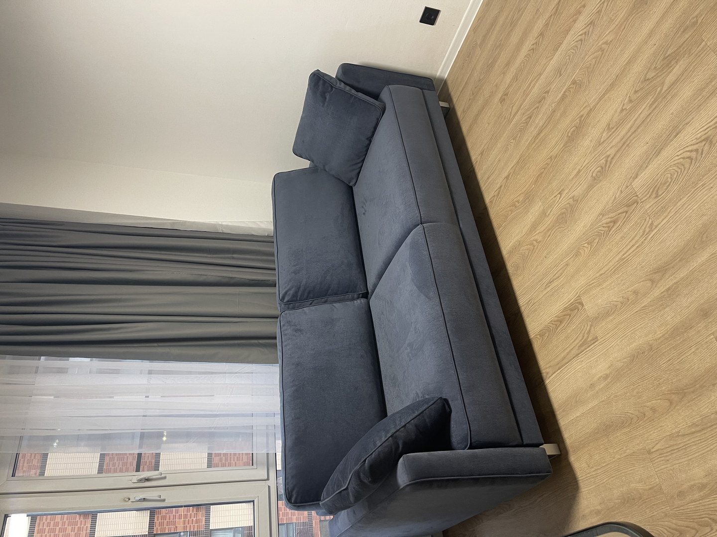 Диван качественный. Очень красивый. Не грамозкий. Долго выбирала. Материал приятный на ощупь. Можно ставить любой стороной, он по всякому хорош.