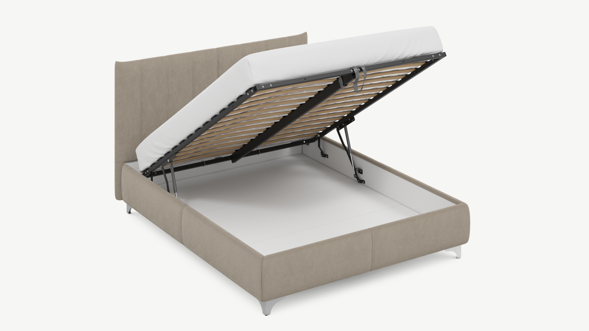 • Скрытая под основанием вместительная емкость без внутренних перегородок позволяет использовать всю площадь подкроватного пространства для хранения вещей.